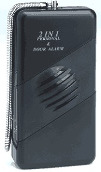This is a dual purpose 120db alarm. It acts as a burglar alarm and a personal alarm. Hang it on any door know (non-metallic doors) and it instantly and automatically sounds when an intruder touches the door knob. Carry it with you and just pull out the metal chain to sound the alarm and deter an assailant. Uses one 9-volt battery. Model AL-2