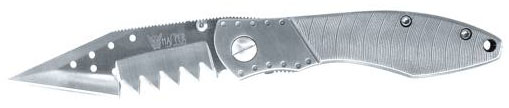 440 stainless steel, one-handed opening, folding knife. Nice quality, a steal at this price.