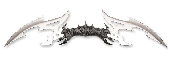 The Valdris, the chosen blade of the Mithrodin, a secret cadre of elite warriors in service of Queen Vaelen in the war against the Black Legion. The hilt of the Valdris was fashioned from the bones and armor of Baelin, great brutal and ruthless beasts created by the Dark One. Its twin blades were designed for the intricate blocking and offensive fighting style of the Mithrodin. This fantastic adult collectible sword is branded with the designer's trademark on the mirror polished blade (false-edged) and includes a certificate of authenticity telling of the swords history.