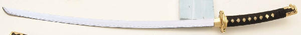 The Tachi was the original sword of the Samurai. This authentic reproduction features elaborate 24K gold plated cast metal parts on both the handle and scabbard. Features include hand braiding, genuine leather hanging straps, and a mirror polished, 420 J2 stainless steel blade.