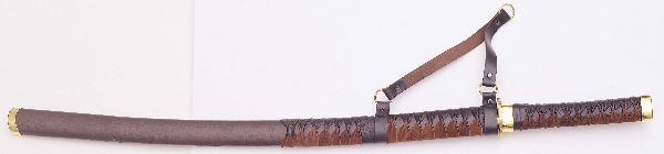 Overall Length: 38 1/2" Blade Length: 26 1/2" Blade Thickness: 3/16" Blade Material: 420 J2 stainless steel, simulated temper line Handle Material: Black ABS, braided genuine leather-wrapped grip, cast metal parts, brass plated finish, push tang (1/2 length) construction Scabbard: Aluminum, genuine leather wrap, cast metal tip, antique brass plated finish, genuine leather hanging strap, brass rivets and rings. Model UC1191