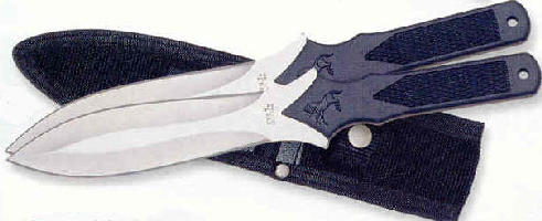Includes two Colt throwers in a double pocket sheath. Overall Length: 9 7/8" Blade Length: 5" Blade Thickness: 3/16" Blade Material: 420 J2 stainless steel Handle Material: Hard rubber, full encapsulated tang Sheath: Black reinforced nylon Model CT19
