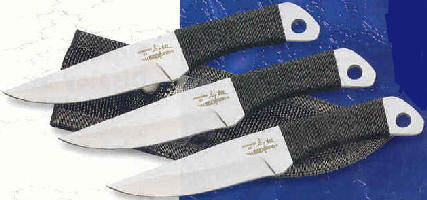 The popular original Hibben thrower with non-slip, high tensile cord-wrapped grip. Perfectly balanced, assuring uniform rotation when thrown properly. Includes three UC946s in a triple pocket sheath.