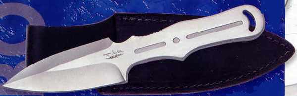 The next generation of Hibben Throwers! Constructed of one-piece, tempered stainless steel, featuring "trigger grip" handle design that guides the hand into the same consistent and accurate release with every throw. Design patented.