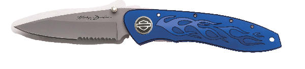 Designed by custom knifemaker, Fred Carter. The Legend Collection features precise channeled liner lock mechanisms and lightweight aluminum handles inlaid with classic H-D shields. The 440 stainless steel blades are fully heat treated, plus CRYOEDGE, cryogenically tempered to -300° F for extremely high edge retention. The blades also feature precision laser marked logos and built-on thumbstuds for easy one-handed opening. Each knife includes a pivot screw wrench, used to adjust the blade to your desired tension.
