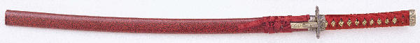 Sword - Overall Length: 38 1/2" Blade Length: 28 1/4" Blade Thickness: 3/16" Blade Material: 420 J2 stainless steel Handle Material: Black ABS, cord wrap, cast metal parts, antique brass plated finish, gold plated menuki, push tang (1/2 length) construction Scabbard: Aluminum, lacquered finish, knotwork-style cord wrap