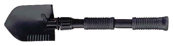 Versatile tool with interchangeable parts. Functions as both a shovel and a pick. Collapses to a convenient size.