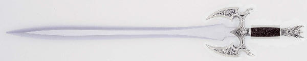 Black simulated granite grip. Overall Length: 36" Blade Length: 25 1/2" Blade Material: 420 J2 stainless steel, false-edged. Blade Thickness: 3/16" Handle Material: Cast metal, antique silver plated finish, ABS grip, rat-tail tang construction. Remailer box. Model UC1120B