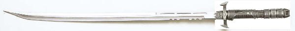 The sword of the future is here, brought to you through a portal in time by United Cutlery. The Samurai of the year 3000 A.D. is a master of high technology fighting and weaponry and their primary arm is the plasmium sword, a device constructed by highly disciplined sword masters using an extremely secretive form of physics. Its virtually indestructible blade, charged by high energy ionized plasma, cuts through practically and material except another blade of its kind. It features the Samurai code of justice, service, and honor on the handguard, engraved in their secret language. The handle of this high quality adult collectible is made of precisely machined metal parts. The scabbard locks to the handle and can only be released with a push of a hidden button. The blade is sharp, fully functional stainless steel.