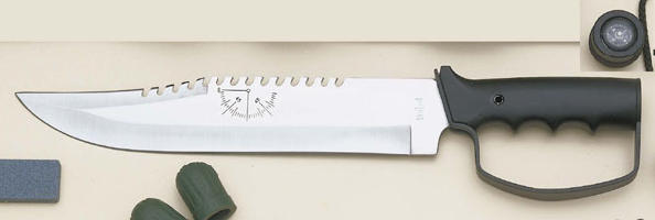 Overall Length: 15 1/4" Blade Length: 10" Blade Thickness: 5/32" Blade Material: 420 J2 stainless steel Handle Material: Black cast metal, detachable handguard, survival kit stored inside, precision compass built into butt cap, push tang Sheath: Heavy nylon sheath, protective plastic blade shell holds G.I. can opener, sharpening stone, animal snare, snake bite kit, and emergency flashlight. Model UC0212