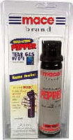 Triple Action Mace sprays combines OC PEPPER with CN TEAR GAS along with a UV MARKING DYE. OC PEPPER causes eyes to slam shut and uncontrollable coughing and choking. CN TEAR GAS causes profuse tearing, an intense burning sensation to the face, and disorientation. UV DYE marks the assailant and may aid in identification once apprehended. High powered model is ideal for home, dormitories and RV's. Our largest unit. Features flip-top safety cap. Full cone fogger 120 gram unit, sprays up to 8 feet. Contains 38 one second bursts. (Cannot be shipped to NY) Sorry, no International orders or express shipping for pepper spray. Model 80196