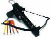 Our pistol crossbow has a 50 pound draw, cocking lever, adjustable sights, safety, durable fiber construction, and comes with three plastic bolts (arrows). Model CB-1 |