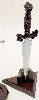 Overall Length: 17 3/8" Blade Length: 10 1/4" Blade Thickness: 1/8" Blade Material: 420 J2 stainless steel, double-edged, mirror polished. Handle Material: Cast metal guard and pommel, antique silver plated finish, rat-tail tang construction. |