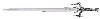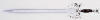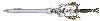 Overall Length: 34 1/2" Blade Length: 25 1/8" Blade Thickness: 5/32" Blade Material: 420 J2 stainless steel, false-edged Handle Material: Cast metal, antique silver plated finish, gold tone highlights, rat-tail tang construction. |